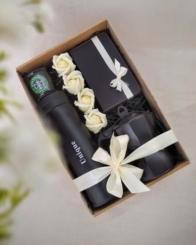 باکس هدیه تراول ماگ و قهوه جوش مردانه | کادو ولنتاین و تولد