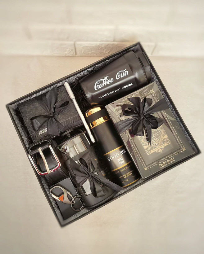 باکس هدیه ست چرم + تراول ماگ و اکسسوری مردانه | کادو ولنتاین و تولد
