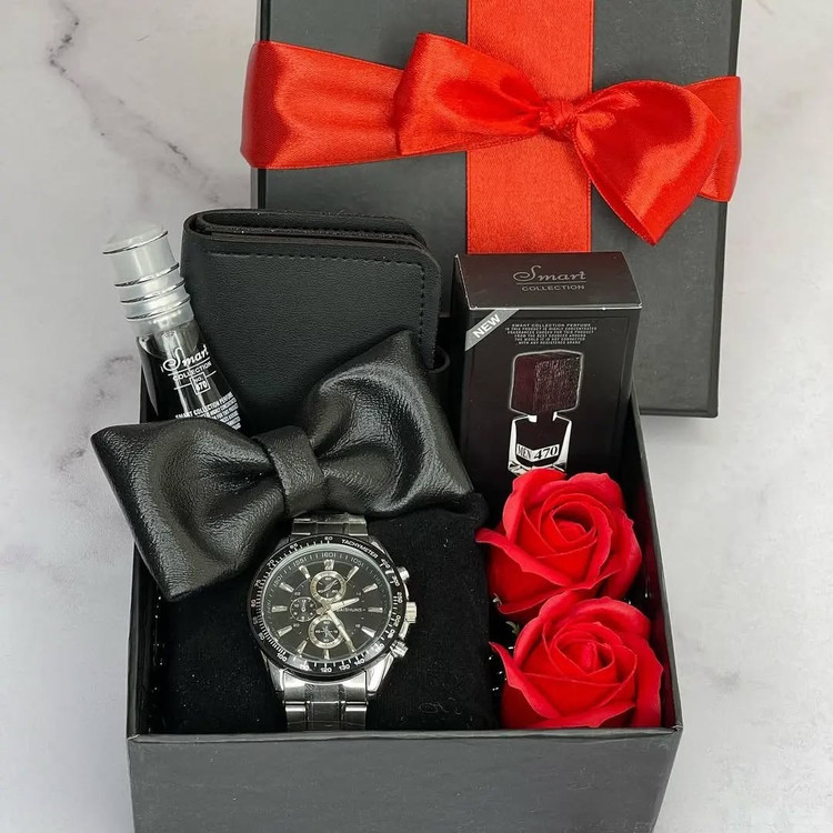 باکس هدیه ساعت و کیف پول و پاپیون مردانه | کادو تولد و ولنتاین