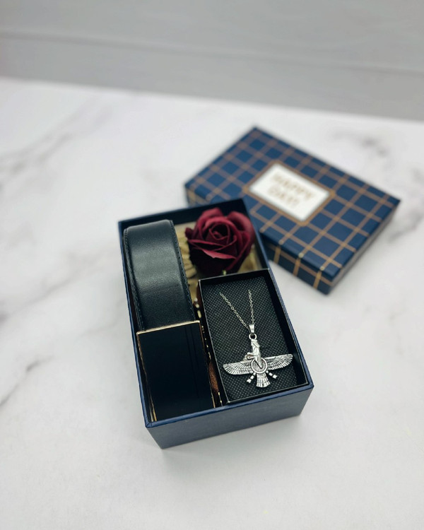 باکس هدیه کمربند و گردبند مردانه | کادو ولنتاین و تولد
