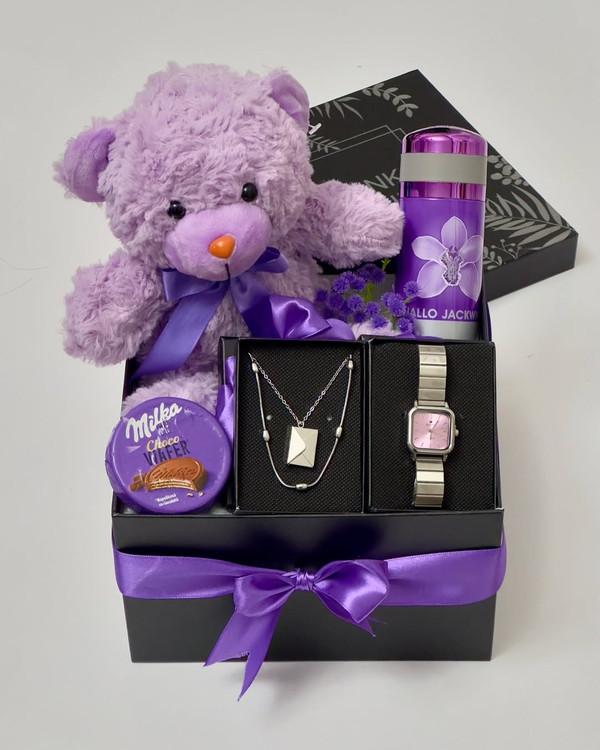 باکس هدیه ساعت و گردنبند و خرس زنانه و دخترانه | کادو تولد و روز دختر