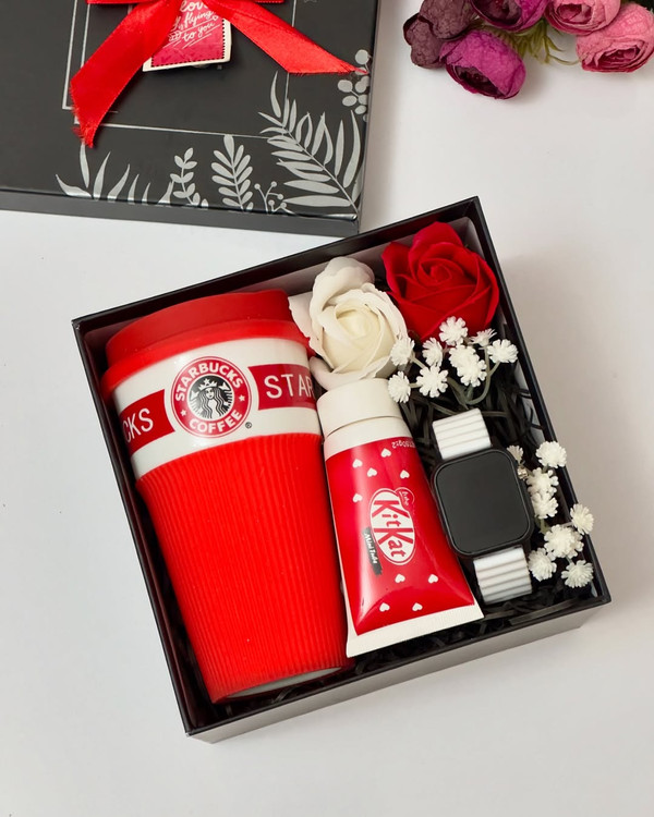 باکس هدیه ساعت و ماگ استارباکس و شکلات دخترانه و پسرانه | کادو تولد و روز دختر