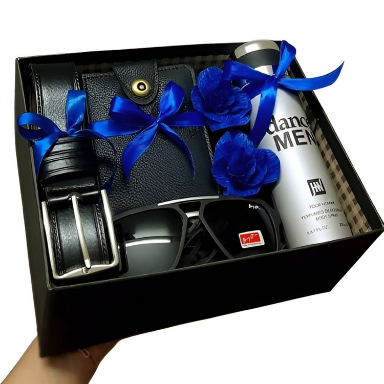 کادو تولد و ولنتاین مردانه ست چرم + ساعت + اسپری + عینک | باکس هدیه تولد و ولنتاین