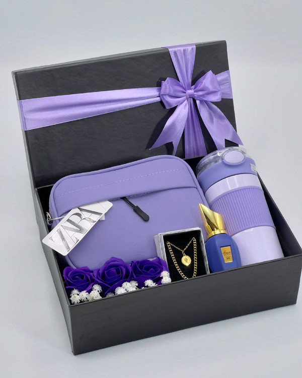 باکس تراول ماگ و اکسسوری تم بنفش دخترانه | کادو روز زن و تولد