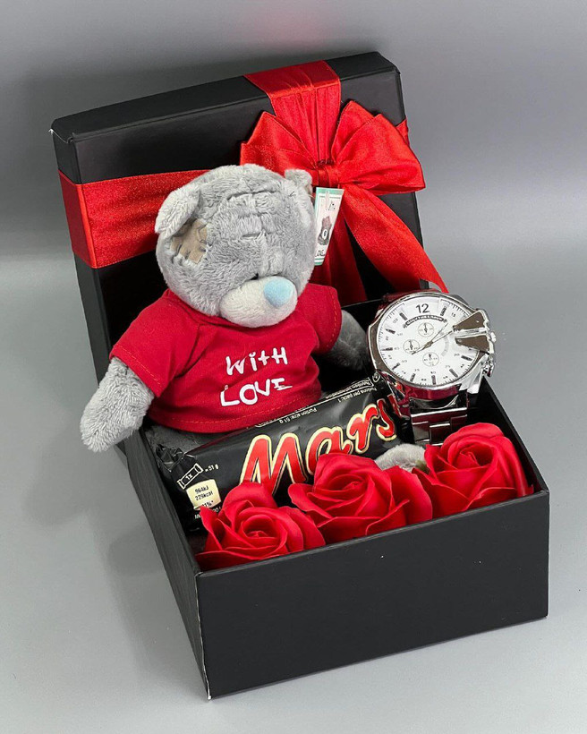 باکس خرس و ساعت مردانه | کادو تولد و سالگرد ازدواج