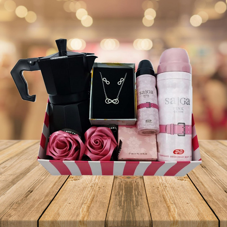 باکس هدیه قهوه جوش و اکسسوری زنانه و دخترانه | کادو روز زن و مادر و تولد