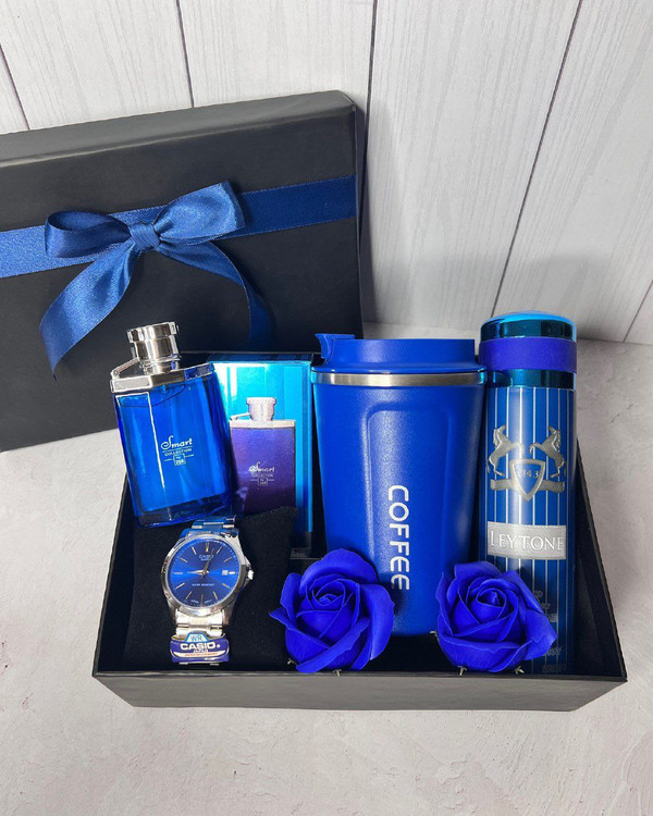 باکس هدیه ساعت و تراول ماگ مردانه آبی