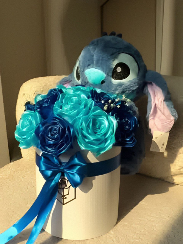 باکس گل رز جاودان ربانی همراه با عروسک استیچ / هدیه تولد