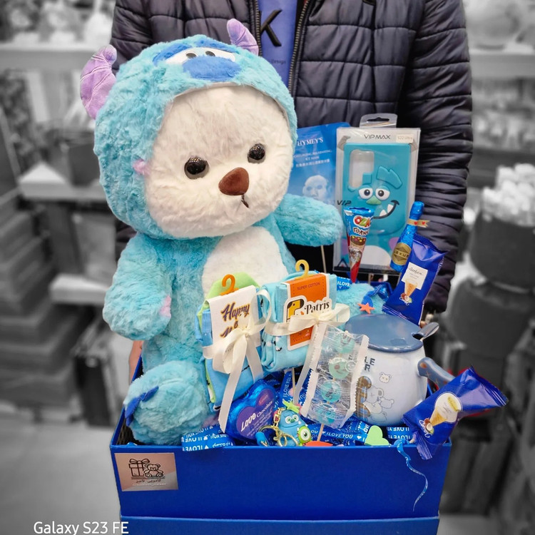 باکس هدیه عروسک و ماگ ست آبی دخترانه | کادو تولد و ولنتاین