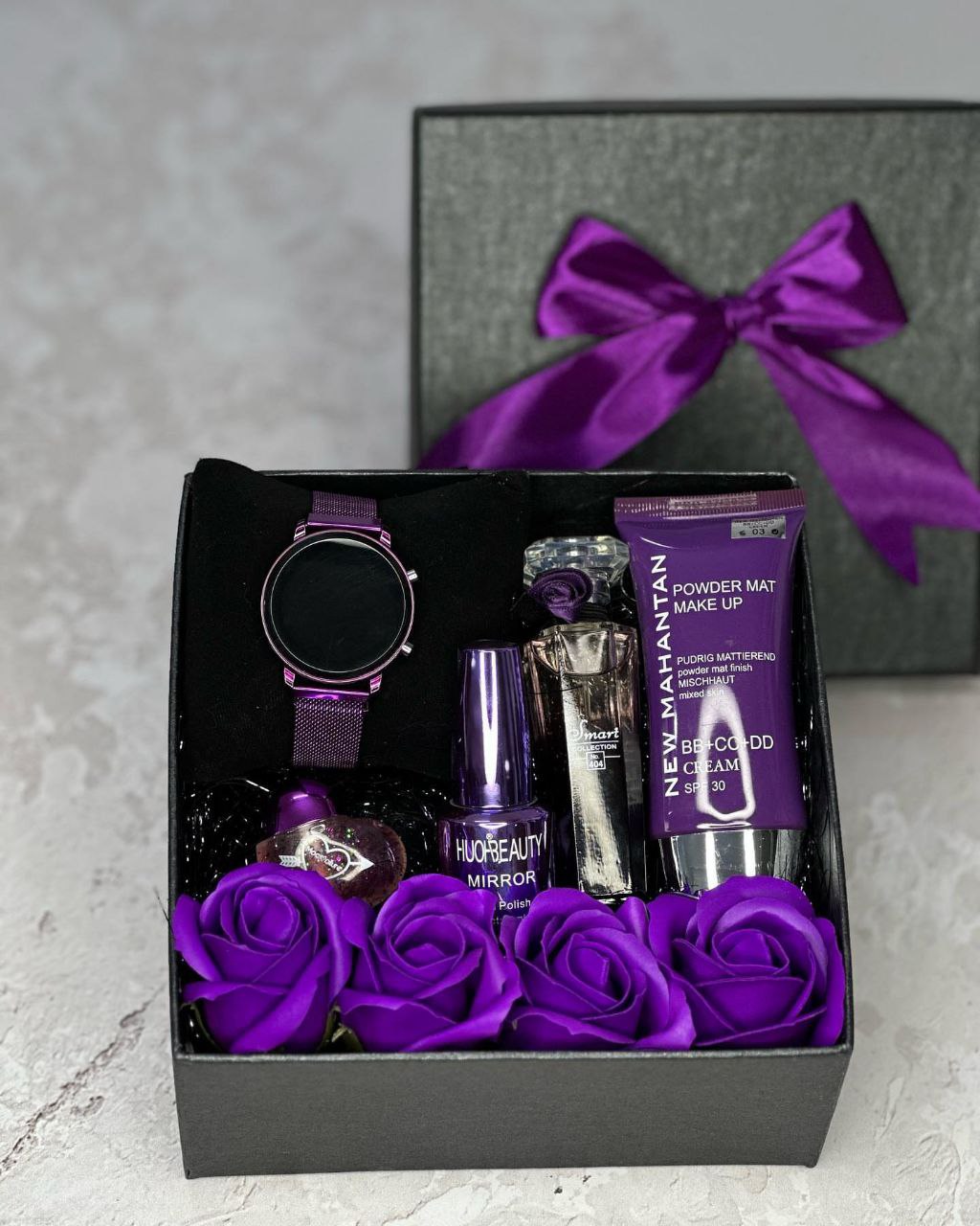 باکس ساعت و ست اکسسوری بنفش دخترانه | کادو تولد و ولنتاین