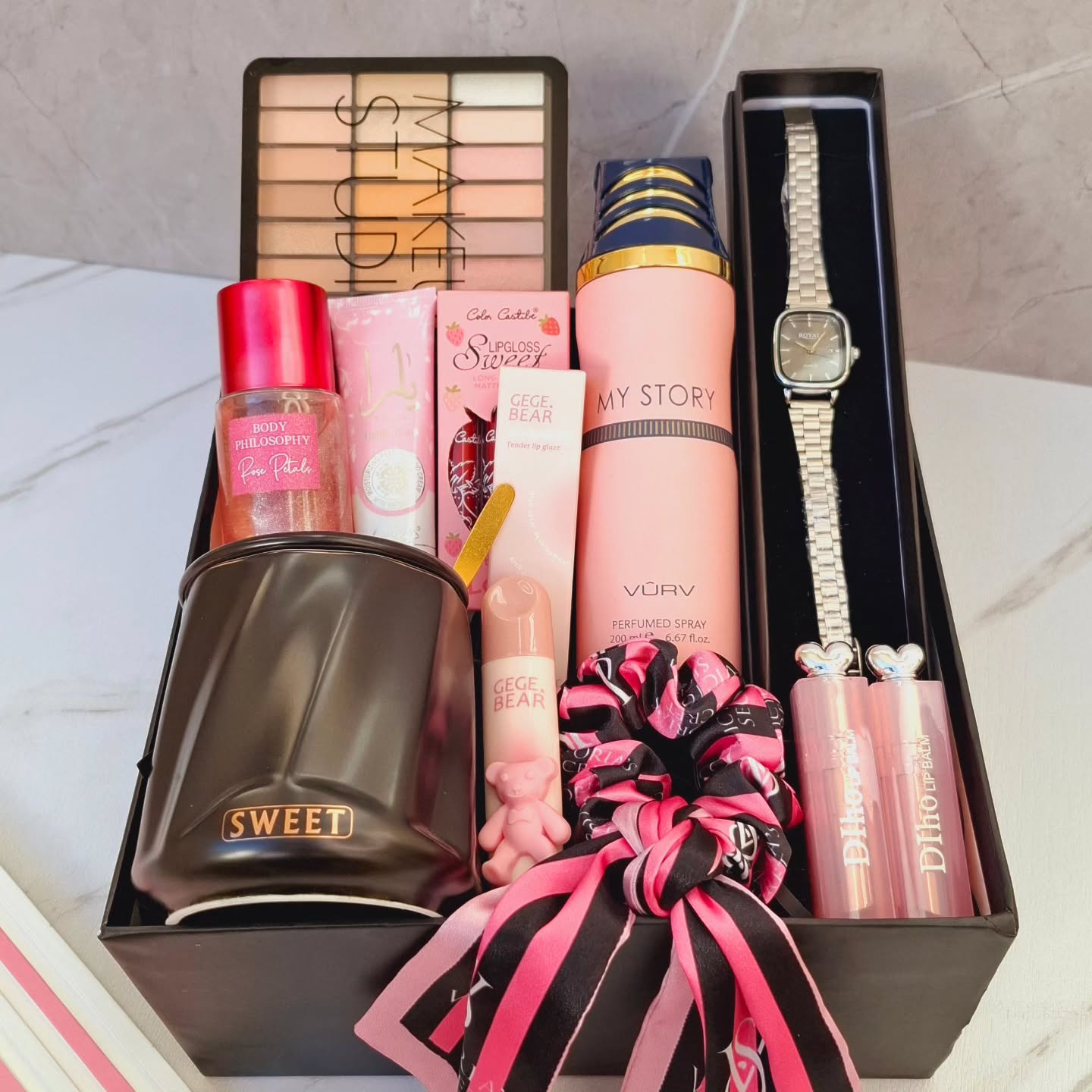 🔹 باکس های هدیه شامل اکسسوریهای کاربردی و خوراکی های بسیار لذیذ هستند.