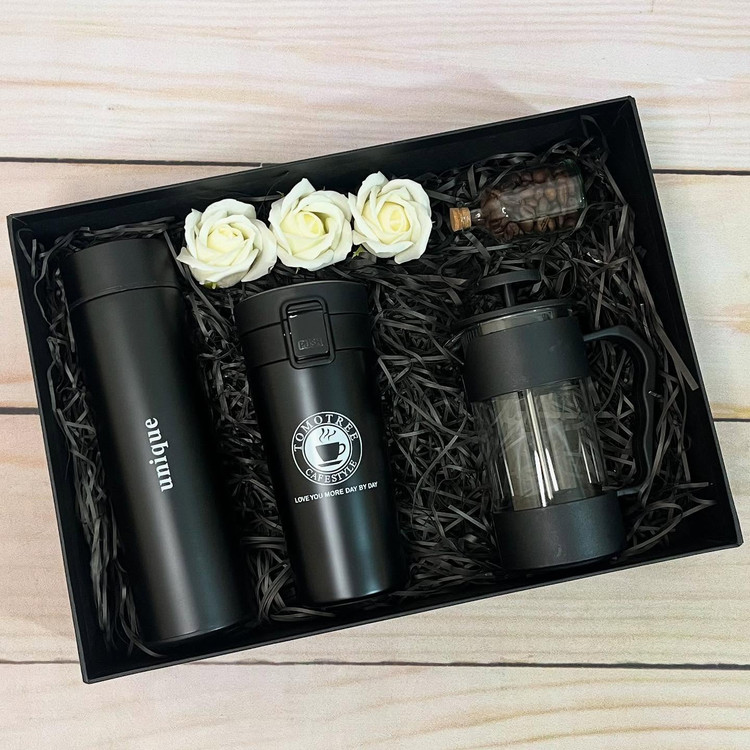 باکس کادویی اسپرت تراولماگ و فلاسک و فرنچ پرس | هدیه روز زن و مرد