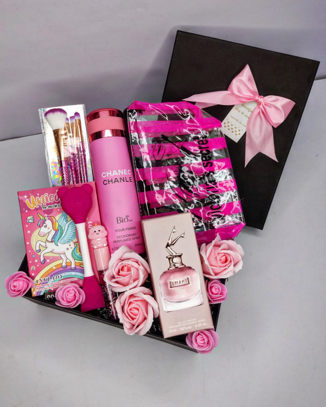 باکس کادویی ست صورتی دخترانه و زنانه | هدیه روز زن و ولنتاین و تولد